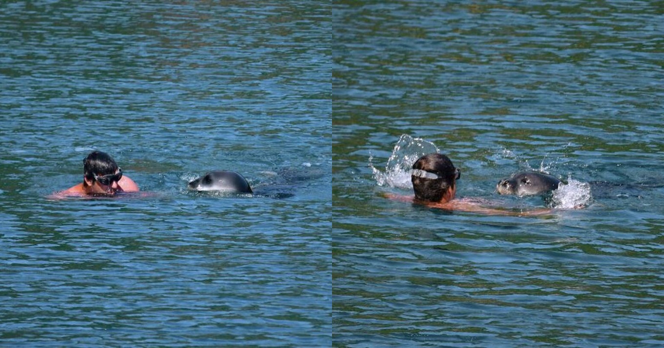 Στη συγκεκριμένη περίπτωση, ο άνδρας βούτηξε στη θάλασσα όταν τον πλησίασε η φώκια η οποία μετά άρχισε να του επιτίθεται με τον λουόμενο να προσπαθεί να ξεφύγει. Τελικά, ένα μικρό φουσκωτό έσπευσε να τον βοηθήσει.