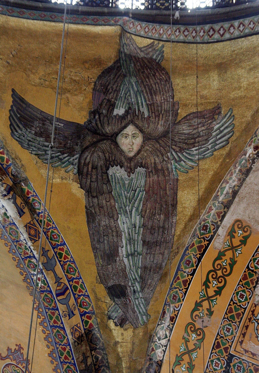 Ο εντυπωσιακός ψηφιδωτός εξαπτέρυγος Άγγελος θεωρείται ότι απεικονίζει τον αρχάγγελο Σεραφείμ, ο οποίος προστατεύει τον Θρόνο του Θεού. Υποστηρίζεται ότι η δημιουργία του χρονολογείται μεταξύ του 9ου και 14ου αιώνα.