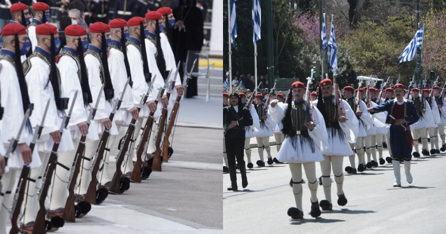 Τον συμβολισμό πίσω από τον βηματισμό των Ευζώνων, η οποία έκλεψε τις εντυπώσεις στην τελετή κατάθεσης στεφάνων στο Μνημείο του Άγνωστου Στρατιώτη αλλά και στην μεγαλειώδη παρέλαση, εξήγησε μέσω Twitter ο λογαριασμός της Προεδρικής Φρουράς.