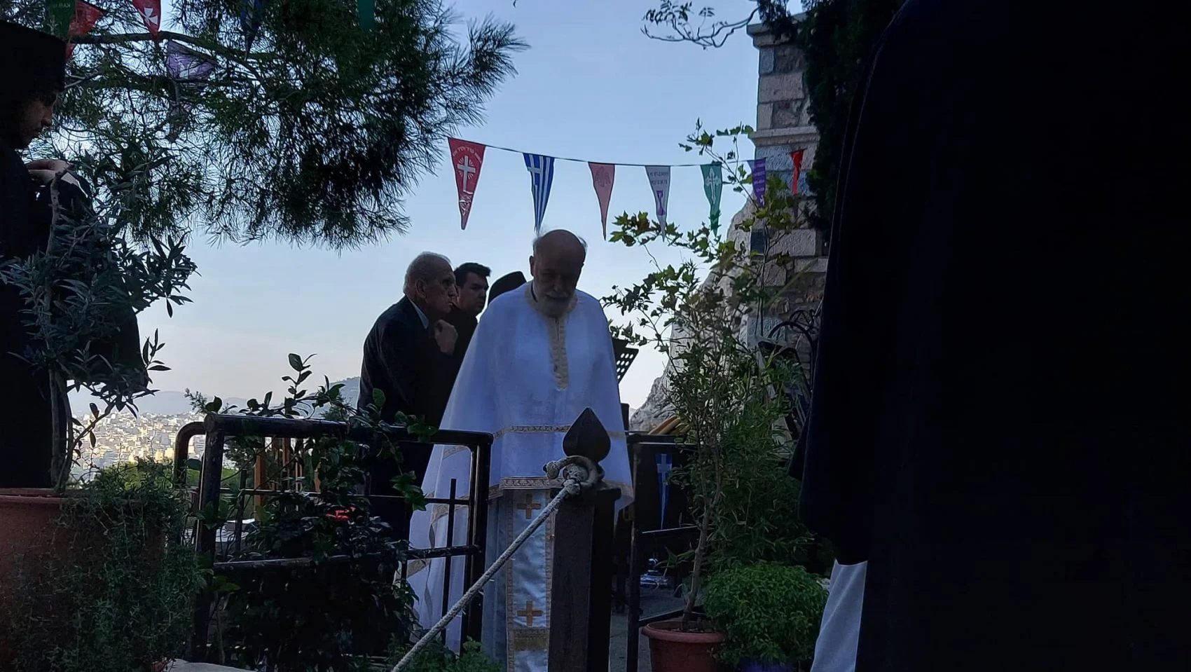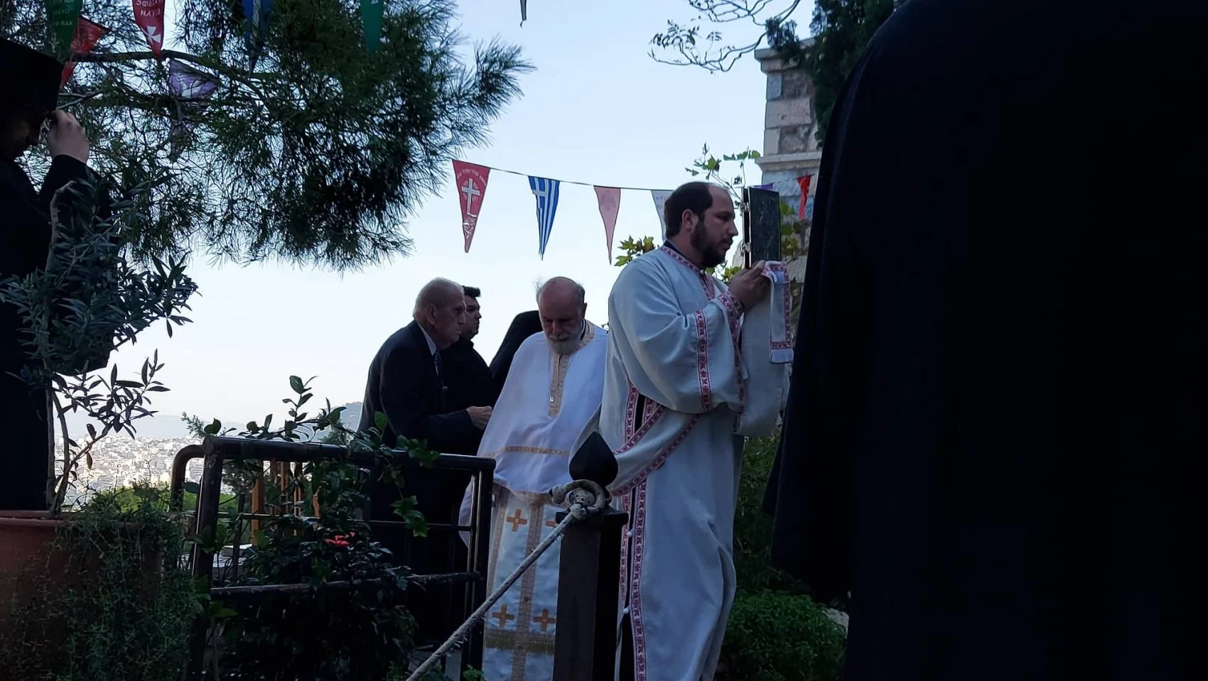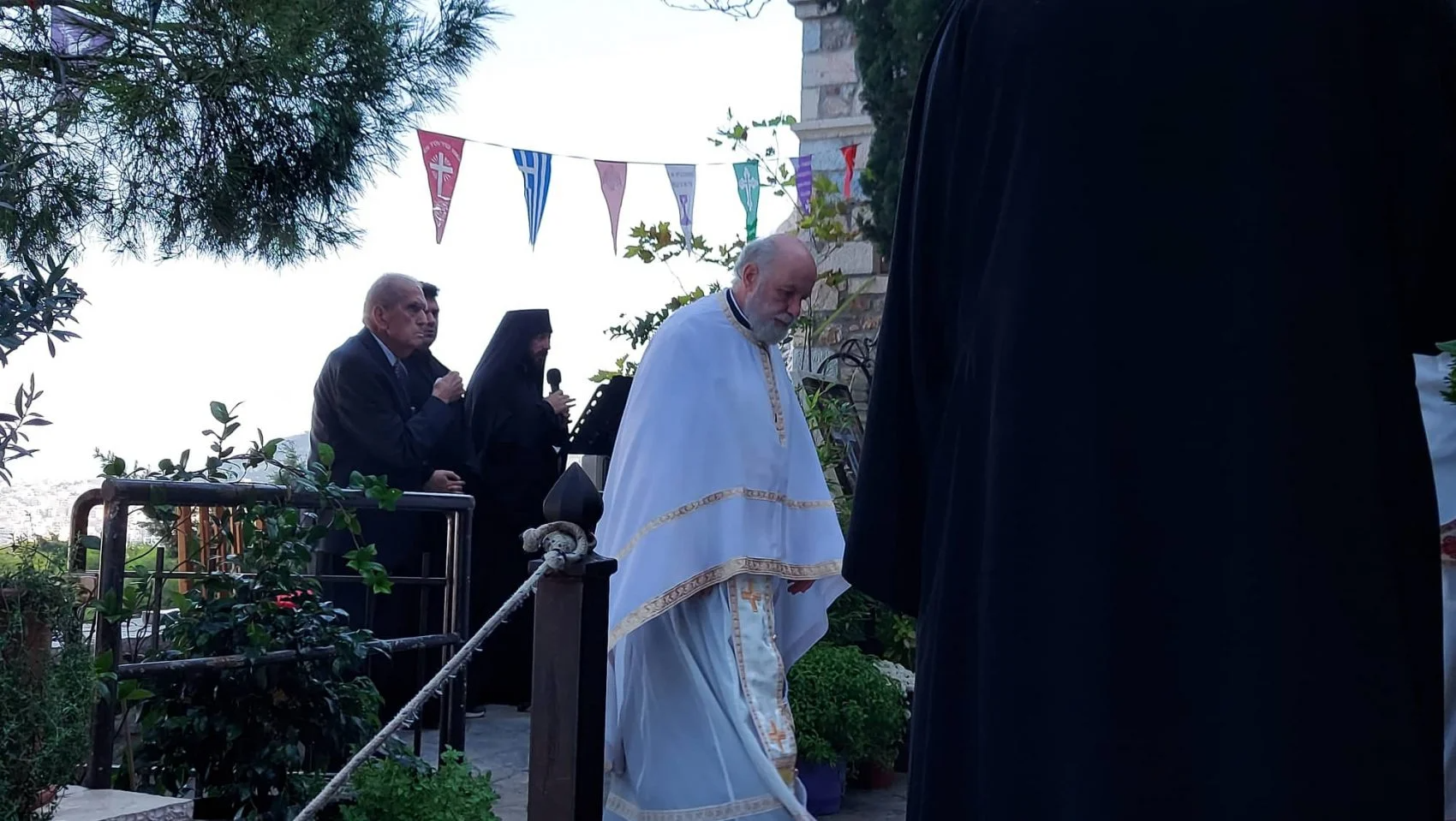 Λίγο πριν τελειώσει η Θεία Λειτουργία, ο εφημέριος πατέρας Δημήτριος εξέφρασε την αγάπη και ευγνωμοσύνη στο πρόσωπο του μεγάλου δασκάλου της μουσικής, του μύστη των Αγγέλων, μη μπορώντας να συγκρατήσει τα δάκρυά του.
