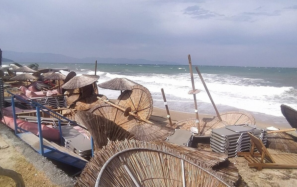 Σε ένα από τα βίντεο μάλιστα, διακρίνεται η ομπρέλα θαλάσσης να έχει φτάσει στον ουρανό και κάποιες άλλες να καταλήγουν στη θάλασσα.