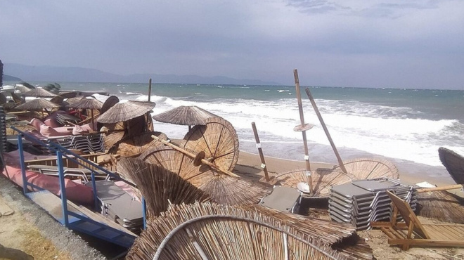Τα πήρε… και τα σήκωσε όλα ο δυνατός αέρας που φύσηξε σήμερα στα Νέα Φλογητά στη Χαλκιδική.