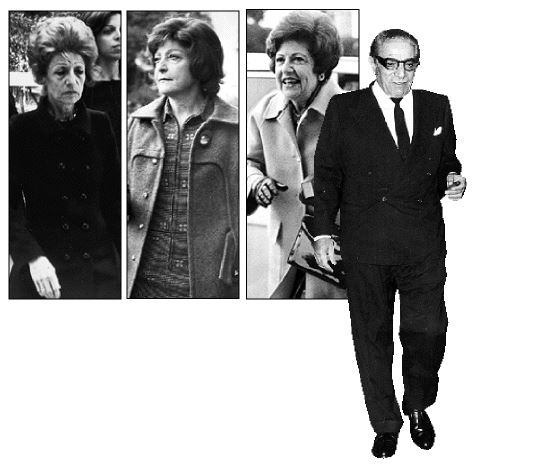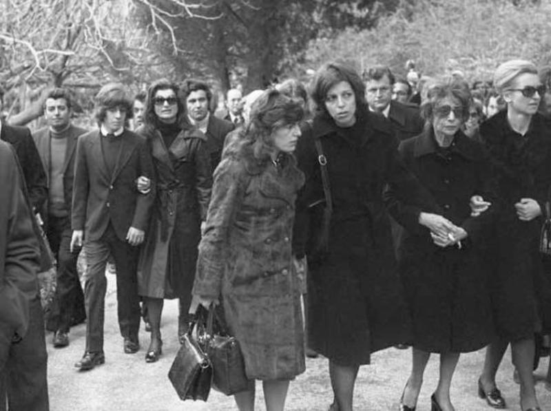Ο ρεπόρτερ, ο οποίος κάλυπτε την επικήδεια τελετή του Ωνάση, έλεγε ένα ένα τα ονόματα των ανθρώπων που ήταν εκεί, καθώς η κάμερα της τηλεόρασης έπαιρνε ένα πανοραμικό πλάνο πάνω από το φέρετρο για να εστιάσει στη συνέχεια στα πρόσωπα των γυναικών που κάθονταν ακριβώς από πίσω. Η κόρη του Αριστοτέλη, Χριστίνα, ήταν εκεί μαζί με τις τρεις αδελφές του. Την Καλλιρρόη Πατρονικόλα, την Άρτεμη Γαρουφαλίδου και τη Μερόπη Κονιαλίδου.