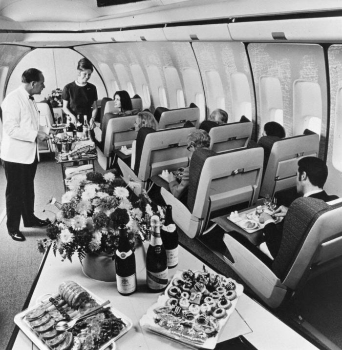 Οι πρώτες θέσεις των αεροσκαφών της Ολυμπιακής είχαν κρυστάλλινα ποτήρια. Επιπλέον, διέθεταν πορσελάνινα πιάτα, κεριά πάνω στα τραπεζάκια, επίχρυσα μαχαιροπίρουνα, χαβιάρι, αλλά και σαμπάνια.
