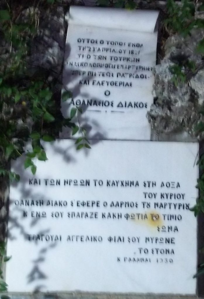 Σε ένα σημείο, βρήκαν ένα σωρό – σκελετό ανθρώπινου σώματος και αφού δεν είχαν βρεθεί άλλα γύρω, κατέληξαν ότι ήταν του Διάκου. Το συγκέντρωσαν, το καθάρισαν και τα έβαλαν σε ένα κουτί ξύλινο και τα έθαψαν πάλι στο ίδιο σημείο, τοποθετώντας πάνω μερικές πέτρες και έναν σταυρό με το όνομα του.