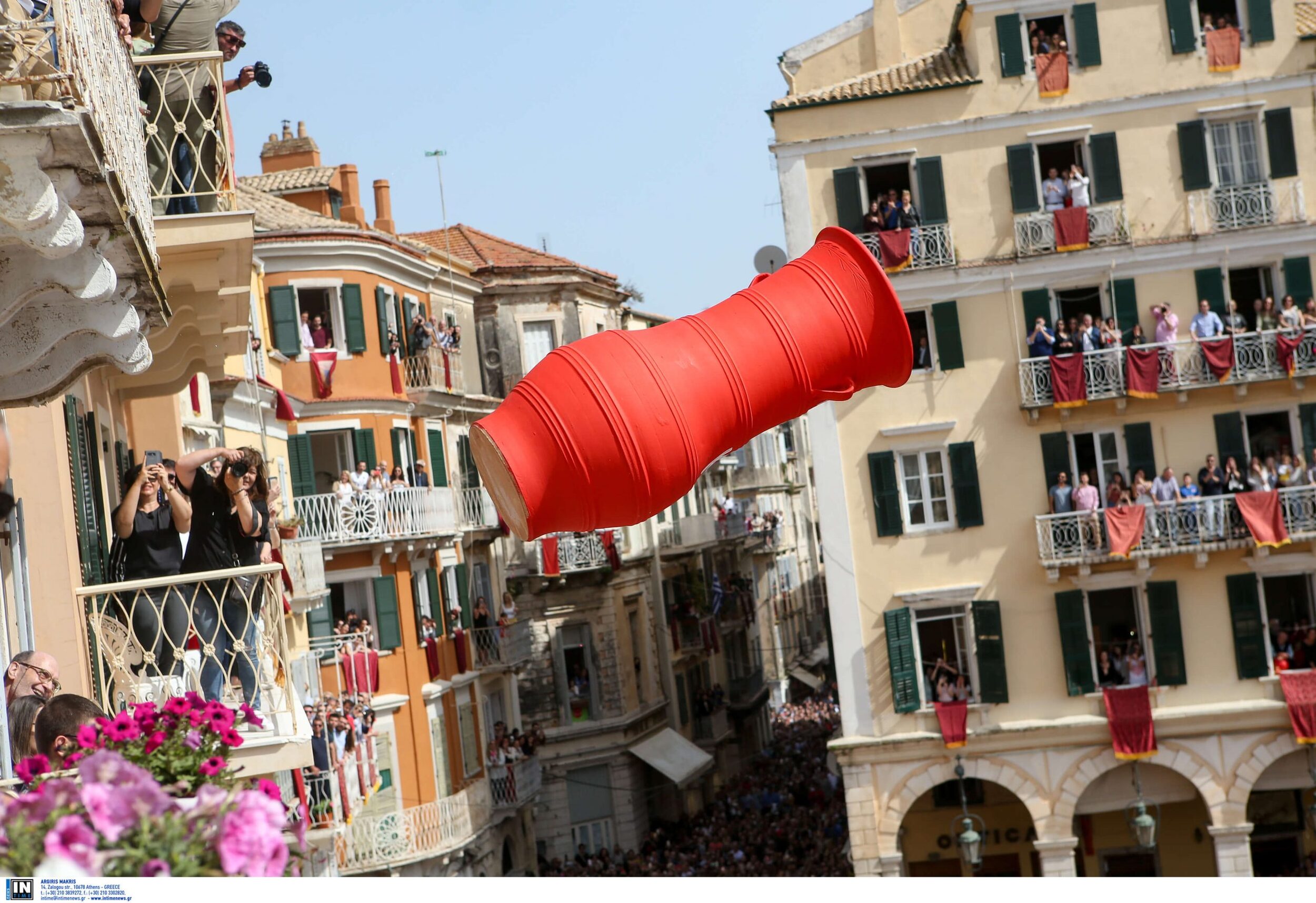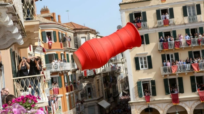 Κανάτα στο κεφάλι γυναίκας έπεσε σήμερα, Μ. Σάββατο, στην Κέρκυρα, κατά την ρίψη των «Μπότηδων», στο ιστορικό δημαρχείο της Κέρκυρας.