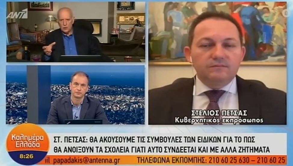 Τριήμερο της Πρωτομαγιάς: Ο Στέλιος Πέτσας φιλοξενήθηκε στην εκπομπή «Καλημέρα Ελλάδα» και την τηλεόραση του ΑΝΤ1, παραχωρώντας συνέντευξη. Ο κυβερνητικός εκπρόσωπος μίλησε στη συνέντευξή του για σταδιακή επιστροφή στην κανονικότητα. Ο ίδιος επιβεβαίωσε επίσης πως ο πρωθυπουργός θα προχωρήσει σε ανακοινώσεις την ερχόμενη εβδομάδα.