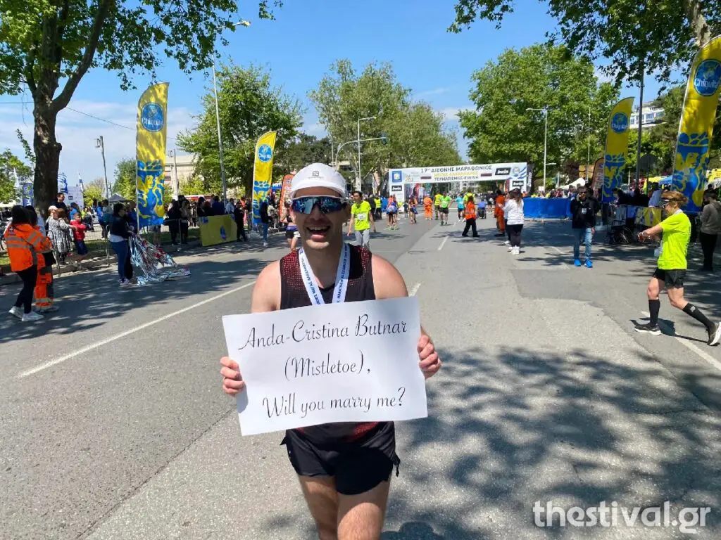 Μια πρωτότυπη ιδέα για να κάνει πρόταση γάμου στη σύντροφό του είχε ένας αθλητής που συμμετείχε στον 17ο Διεθνή Μαραθώνιο «Μέγας Αλέξανδρος».