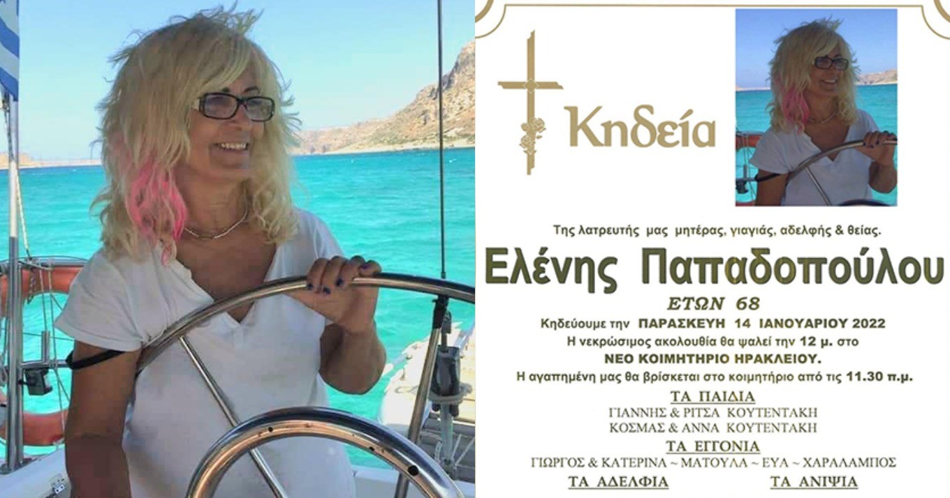 Υ.Γ :Σαν οικογένεια νιώθουμε την υποχρέωση να σας ενημερώσουμε λόγο της κατάστασης με τον COVID που ζούμε όλοι μας ,ότι τη Μητέρα μας τη χάσαμε λόγο της άρνησης της να εμβολιαστεί , νόσησε βαριά και μετά απο ένα μήνα στη ΜΕΘ Χανίων έχασε τη μάχη με τον κορονοϊό.