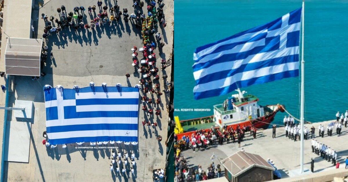 28η Οκτωβρίου: Στο λιμάνι της Χίου υψώθηκε η τεράστια ελληνική σημαία