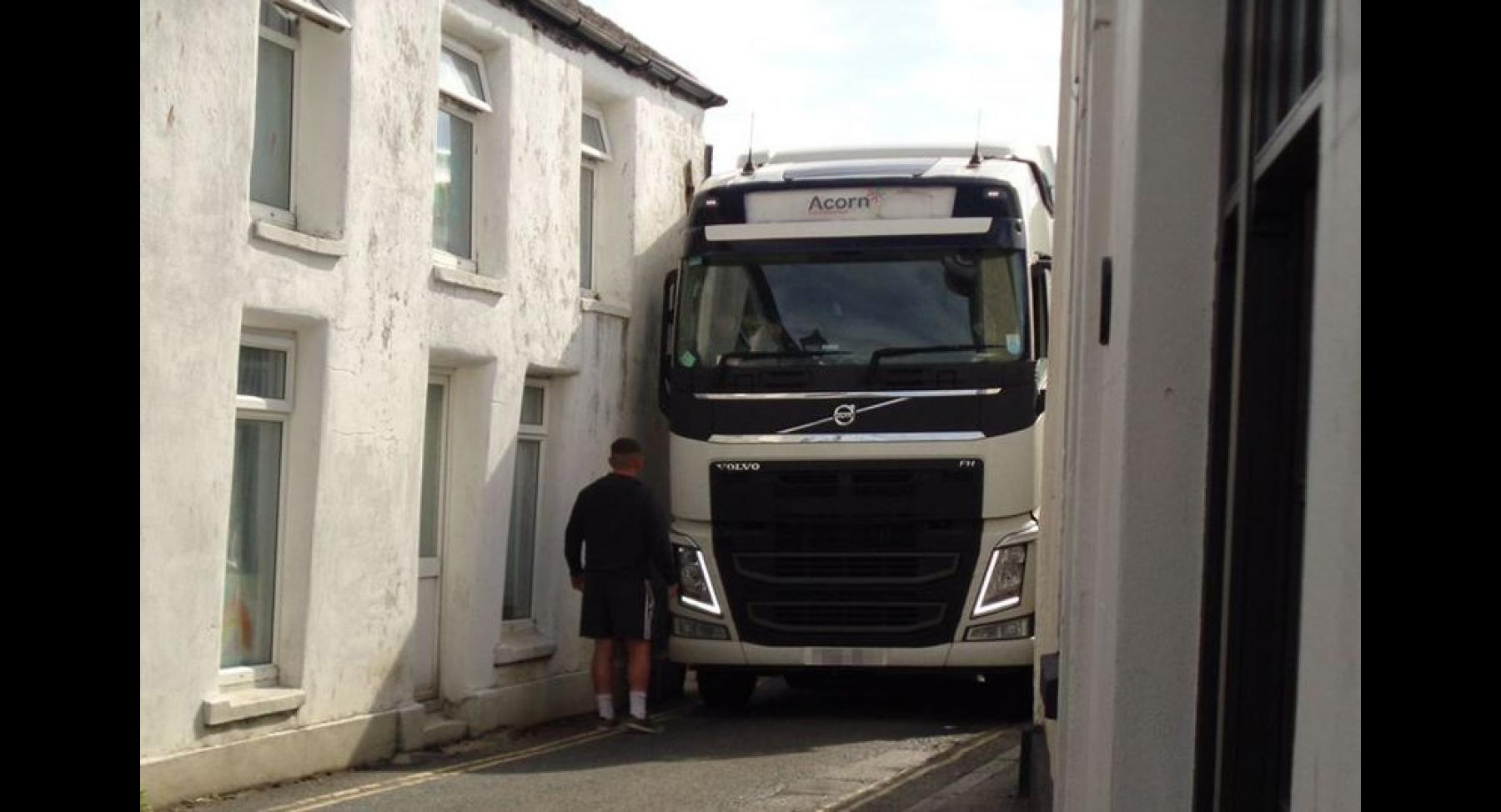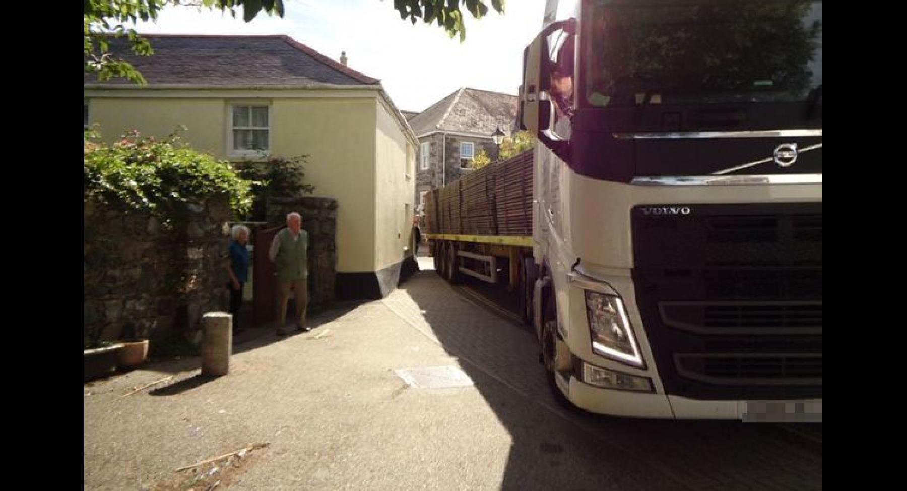 Σε ένα στενό ενός χωριού της Κορνουάλης κόλλησε ένας οδηγός νταλίκας. Εκείνος άκουσε το αφεντικό του και αγνόησε τις πινακίδες που έθεταν περιορισμό στο πλάτος των οχημάτων. Μια κάτοικος του χωριού Mullion, όπου κόλλησε η νταλίκα έδωσε τα εύσημα στον οδηγό για την ψυχραιμία του και μαζί με άλλους ντόπιους τον βοήθησαν να βγει από το στενό με ασφάλεια.