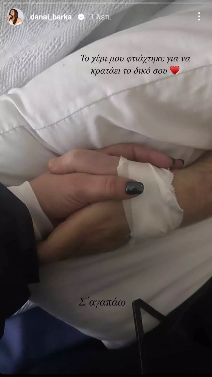 Επίσης, η Βίκυ Σταυροπούλου, επίσης στενή φίλη και συνεργάτιδα του ηθοποιού, βρίσκεται αδιάκοπα στο πλευρό του, στηρίζοντάς τον σε αυτή τη δύσκολη στιγμή. Την Παρασκευή το μεσημέρι, η Δανάη Μπάρκα μοιράστηκε μία συγκινητική φωτογραφία στα Instagram Stories της, όπου κρατά το χέρι του Χατζηπαναγιώτη, συνοδεύοντάς τη με τη λεζάντα: «Το χέρι μου φτιάχτηκε για να κρατάει το δικό σου. Σε αγαπάω»
