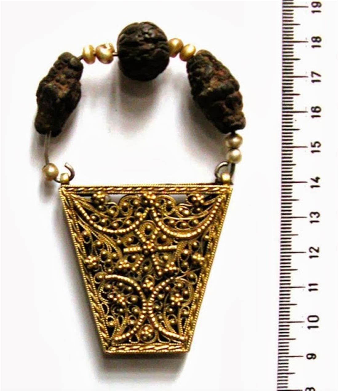 Ό χρυσός βρίσκεται υπό την μορφή 28 επιμελώς σκαλισμένων επιπέδων πλακιδίων, ποικίλων σχημάτων (παραλληλογράμμων, τραπεζοειδών, πολυγώνων κτλ.) και διαστάσεων περίπου 5 εκ. χ 7 εκ. Κάθε πλακίδιο έχει διαφορετικό σχέδιο πολύπλοκης καλλιτεχνικής μικροεπεξεργασίας. Ό λίβανος1 και ή σμύρνα2 διατηρούνται ως μείγμα υπό την μορφή εξήντα δύο περίπου σφαιρικών χανδρών μεγέθους μικρής ελιάς.