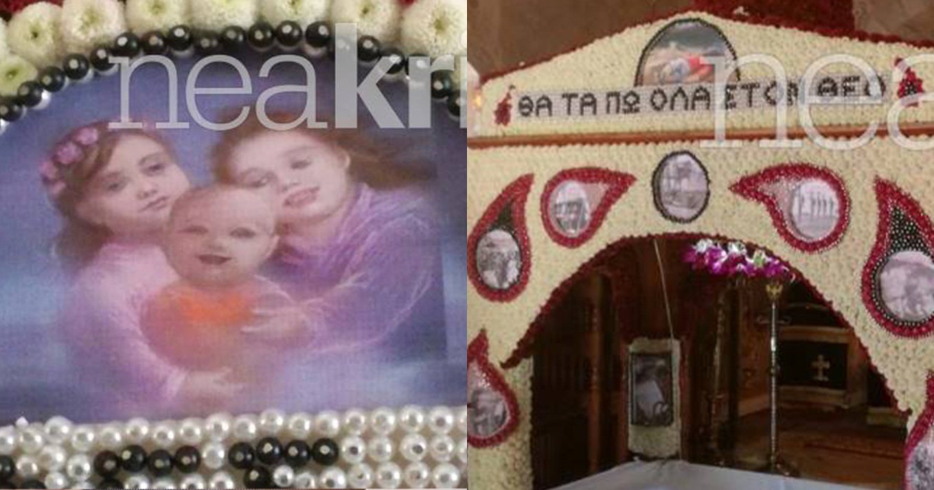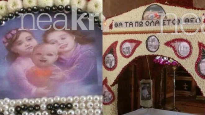 Επιτάφιο με τη φωτογραφία της Τζωρτζίνας, της Μαλένας και της Ίριδας έφτιαξαν στο Μοναστήρι του Αγίου Παντελεήμονα, στο Φόδελε Ηρακλείου, στην Κρήτη.
