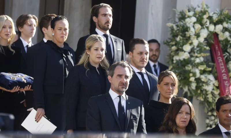 Πλήθος γαλαζοαίματων βρέθηκε στη Μητρόπολη για να αποχαιρετήσει τον τέως βασιλιά Κωνσταντίνο, αλλά και απλοί πολίτες που συγκεντρώθηκαν από νωρίς να τιμήσουν τη σορό του και να αποτίσουν φόρο τιμής.