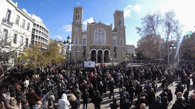 Η εξόδιος ακολουθία στον Ιερό Καθεδρικό Ναό των Αθηνών ολοκληρώθηκε, προεξάρχοντος του Αρχιεπισκόπου Αθηνών και πάσης Ελλάδος Ιερωνύμου, ενώ συμμετείχαν και οι συνοδικοί αρχιερείς – μέλη της Διαρκούς Ιεράς Συνόδου.