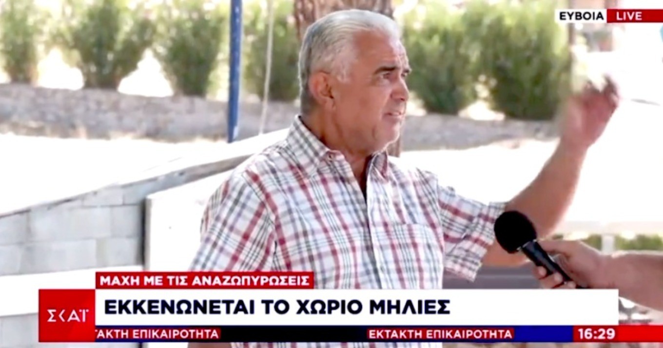 Τον γύρο του διαδικτύου κάνει ένα βίvτεο το οποίο παρουσιάζει κάτοικο της Εύβοιας ο οποίος μόλις μαθαίνει πως καλείται να κάνει δηλώσεις στον ΣΚΑΪ φωνάζει και ξεσπά στους ρεπόρτερς του σταθμού για όσα βιώνει η Ελλάδα με τις πυρκαγιές.