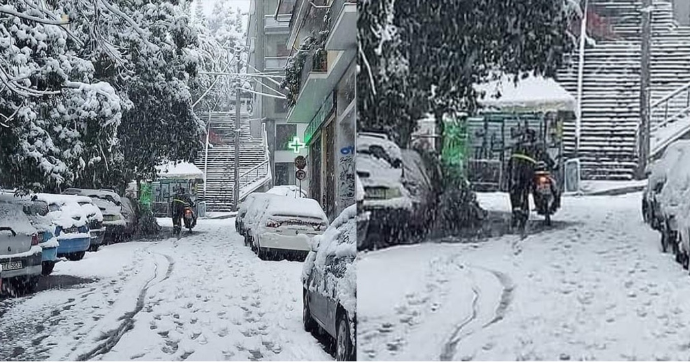 Μια φωτογραφία που ανέβασε ένας χρήστης του facebook κάνει τον γύρο του διαδικτύου και όχι άδικα, καθώς αποτελεί γροθιά στο στομάχι. Ένας διανομέας ανεβάζει με τα χέρια το μηχανάκι για να παραδώσει καφέ μέσα στα χιόνια στα Εξάρχεια.