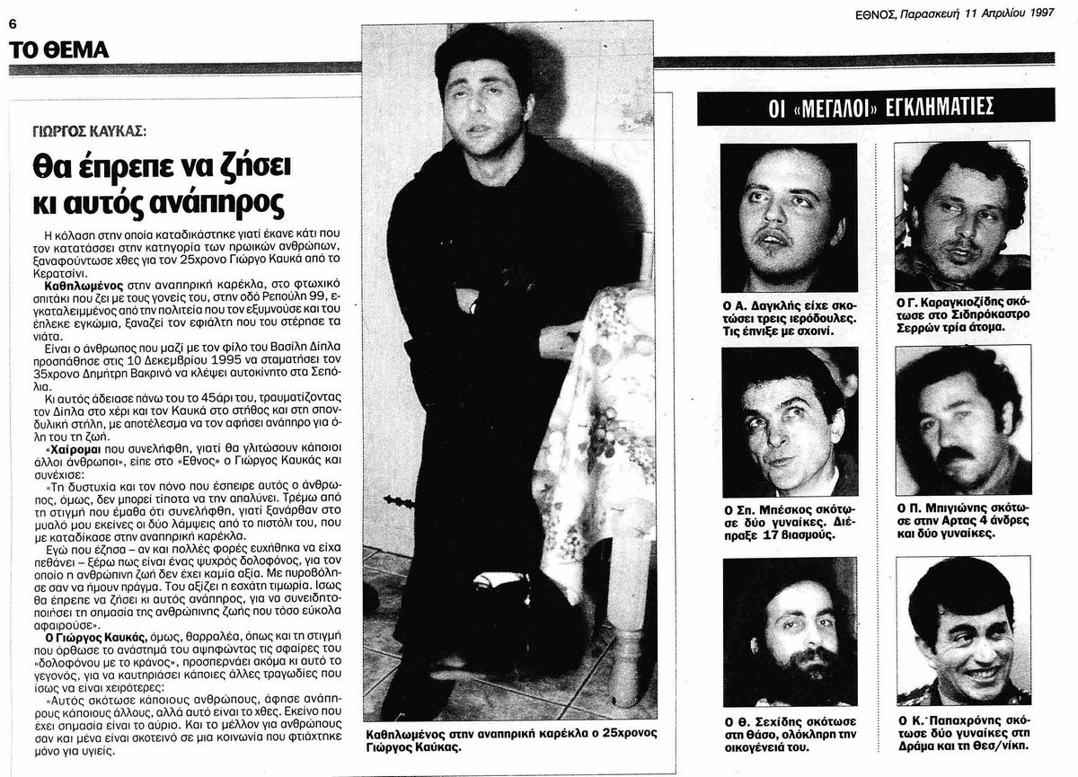 “Τη δυστυχία και τον πόνο που έσπειρε αυτός ο άνθρωπος δεν μπορεί τίποτα να την απαλύνει”, θα δηλώσει ο Καύκας. “Τρέμω από τη στιγμή που έμαθα ότι συνελήφθη, γιατί ξανάρθαν στο μυαλό μου εκείνες οι δύο λάμψεις από το πιστόλι του, που με καταδίκασε σε αναπηρική καρέκλα.