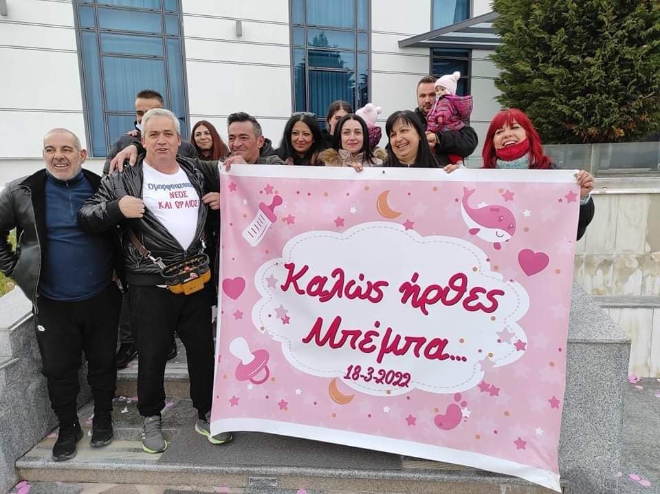 Γερανός, καπνογόνα, συνθήματα και πανό συνέθεσαν το σκηνικό έξω από ιδιωτική κλινική της Δράμας σήμερα, Τετάρτη, όπου μία 25χρονη γέννησε το μωράκι της.