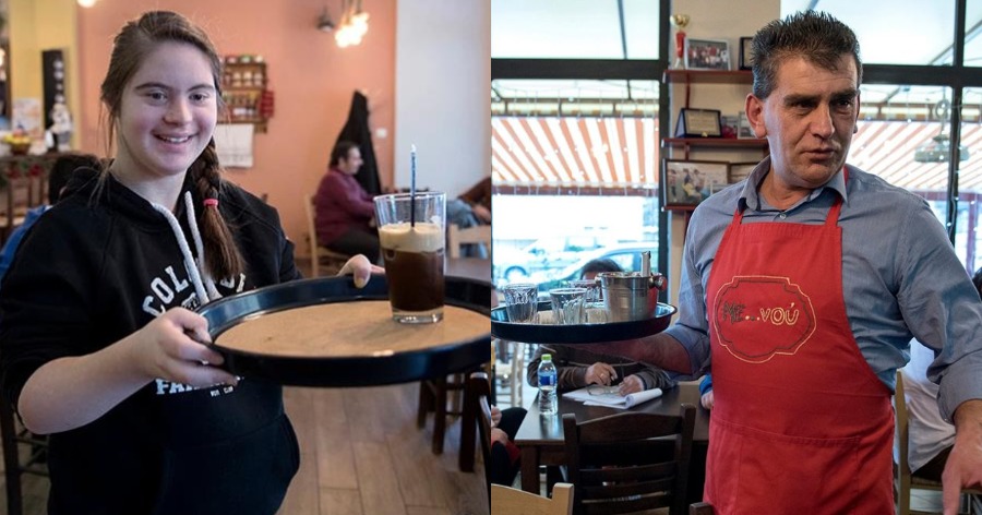 Ο σερβιτόρος με προβλήματα όρασης είναι ο Πασχάλης Μπόσκος. «Καθαρόαιμος τυφλός», συστήνεται και αυτοσαρκάζεται διαρκώς. «Η αναπηρία μου μ’ έμαθε να βλέπω. Ίσως μέχρι τότε ήμουν σαν τους άλλους, που απλώς κοιτάνε». Όταν τον ρωτάνε πώς τα καταφέρνει να σερβίρει αφού δεν βλέπει, είναι αφοπλιστικός: «Το μεράκι με βοηθάει να το κάνω. Άλλωστε δεν είναι τίποτα να πάρεις έναν δίσκο». Και συνεχίζει ανάβοντας ένα τσιγάρο στο εξωτερικό του καταστήματος: «Πρέπει να περάσουμε ένα μήνυμα και να πούμε ότι είμαστε κι εμείς εδώ. Η Πολιτεία αναπαύτηκε και πάρκαρε τα άτομα με αναπηρία στα επιδόματα. Κι εμείς όμως έχουμε ευθύνες. Αναπαυτήκαμε. Μέσα απ’ αυτό που κάνουμε θα δούμε τις αλλαγές στις επόμενες γενιές».