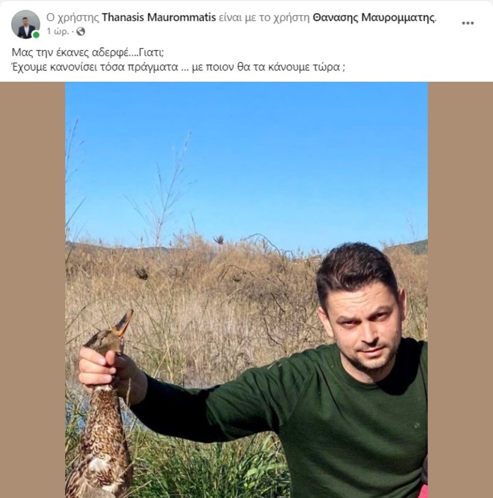 Τον άτυχο 43χρονο αποχαιρέτησε με ανάρτησή του στα κοινωνικά δίκτυα, ο αντιπεριφερειάρχης Αιτωλοακαρνανίας, Θανάσης Μαυρομμάτης, με τον οποίον ήταν κουμπάροι: