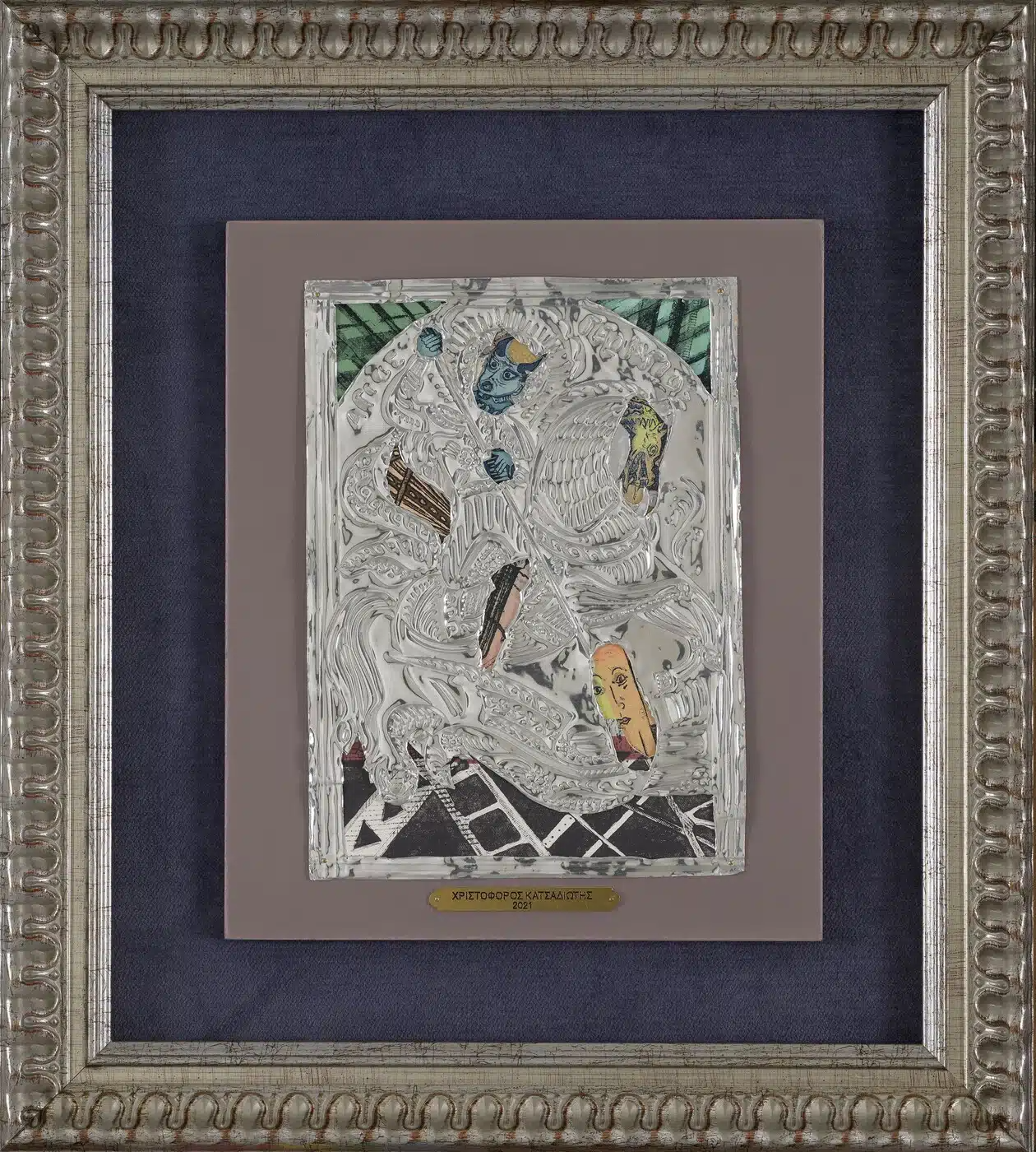 Συμφωνώ μαζί σας, η τέχνη σε όλες τις εκφάνσεις της και τις χρονικές περιόδους είναι πολιτική και πολιτικοποιημένη. Τα δικά μου έργα σε καμία περίπτωση δεν είναι λατρευτικές ή εκκλησιαστικές εικόνες, είναι έργα τέχνης, εικαστικές δημιουργίες που συνδέονται και εμπνέονται και έρχονται να συνομιλήσουν −όπως και των άλλων καλλιτεχνών της έκθεσης «Η Σαγήνη του Αλλόκοτου»− με τα έργα του Γκόγια, που εκτίθενται στην Πινακοθήκη και είναι επίσης έργα παραμορφωτικά. Αν μιλήσουμε για τον Γκόγια, που με αφορμή την έκθεση των χαρακτικών του στην Εθνική Πινακοθήκη γίνεται και η έκθεση για το αλλόκοτο, αυτός ο καλλιτέχνης έζησε ανάμεσα σε μονάρχες, αλλά τα χαρακτικά του, όταν κυκλοφόρησαν, αποσύρθηκαν γιατί καυτηρίαζαν τα ήθη μιας ολόκληρης κοινωνίας και την εξουσία. Πέρασε από την Ιερά Εξέταση. Φυσικά, δεν συγκρίνω τον εαυτό μου με τον Γκόγια −γιατί πρέπει να είμαστε προσεκτικοί σε αυτά που λέμε−, αλλά από εκείνη την εποχή μέχρι σήμερα υποτίθεται ότι τα πράγματα έχουν αλλάξει.