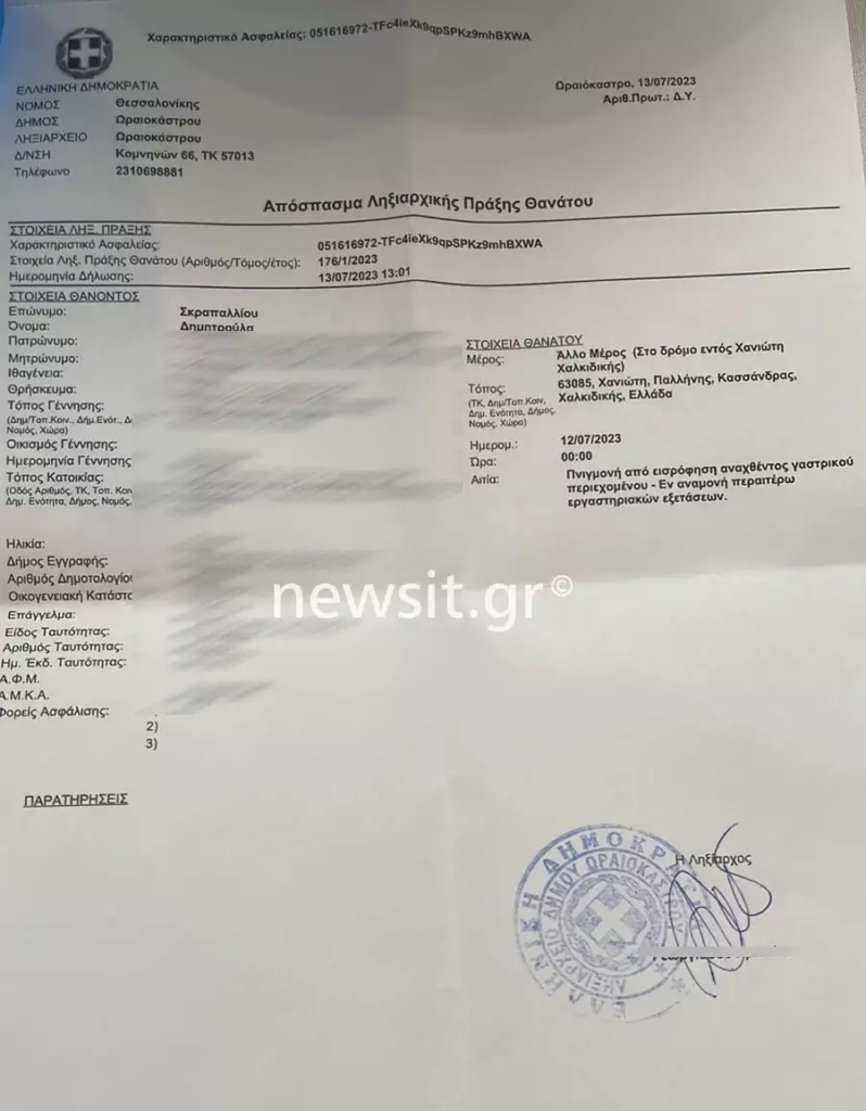 Να σημειωθεί ότι αναμένονται περισσότερες εργαστηριακές και τοξικολογικές εξετάσεις, ενώ η οικογένεια υποστηρίζει ότι το κορίτσι υπέστη αλλεργικό σοκ.