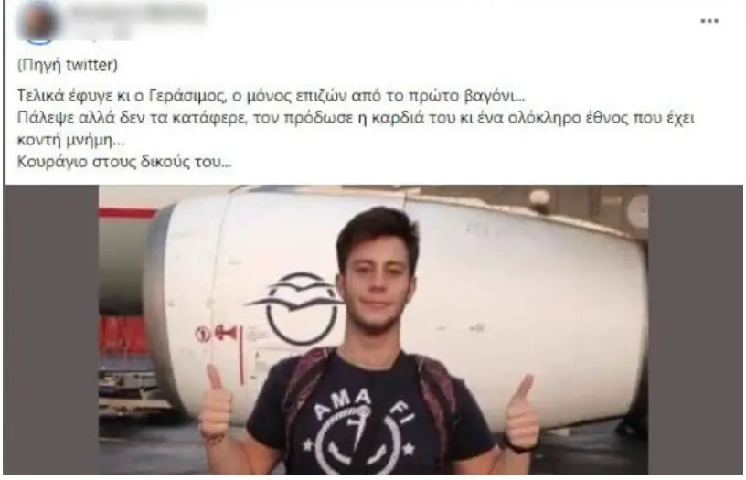 Ο 20χρονος Γεράσιμος, ο μοναδικός επιζώντας του πρώτου βαγονιού της μοιραίας αμαξοστοιχίας στα Τέμπη, συνεχίζει να δίνει τη δική του μάχη για να κρατηθεί στη ζωή.