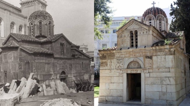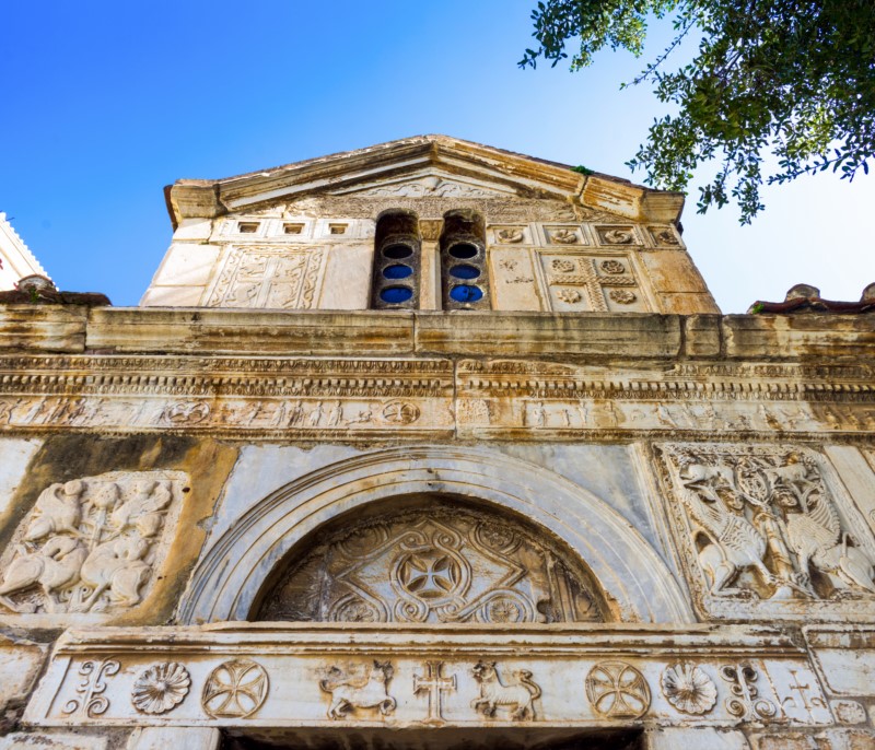 Κομψός ο μικρός ναός που ανεγέρθηκε επί του αρχαιολάτρη Μητροπολίτη Αθηνών Μιχαήλ Χωνιάτη τον 12ο αι. Σύμφωνα με άλλη άποψη, θεμελιώθηκε τον 8ο αι. από την αυτοκράτειρα Ειρήνη την Αθηναία. Για την κατασκευή του δεν χρησιμοποιήθηκαν ως οικοδομικό υλικό πέτρες ή τούβλα. Χρησιμοποιήθηκαν μαρμάρινα ανάγλυφα από μνημεία που χρονολογούνται από τον 6ο αι. π.Χ. έως τα πρώιμα βυζαντινά χρόνια.