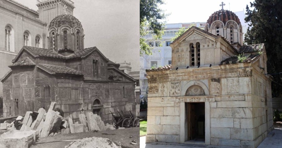 Μάρτυρες της άλλοτε πλούσιας Αθήνας τα μνημεία είχαν εγκαταλειφθεί και ο αρχιτέκτονας ακολουθώντας την τακτική της εποχής ανακύκλωσε το παλιό οικοδομικό υλικό για να χτίσει την εκκλησία πάνω σε έναν ναό αφιερωμένο στην Ειλείθυια, την αρχαία θεότητα που προστάτευε τις εγκυμονούσες.