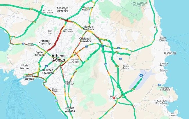Καταληκτικά, στα «κόκκινα» είναι και η Λεωφόρος Συγγρού, στο ρεύμα προς Αθήνας και η Κηφισίας, πάλι στο ρεύμα προς Αθήνα, από τον Φάρο Χαλανδρίου μέχρι την Πανόρμου.