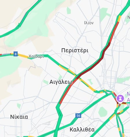 Πιο συγκεκριμένα, έχει σχηματιστεί μεγάλο μποτιλιάρισμα από το ύψος του Αιγάλεω μέχρι τη γέφυρα Βρυούλων.