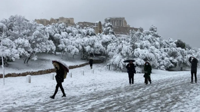 Σύμφωνα με την ΕΜΥ, οι χιονοπτώσεις θα σταματήσουν πριν το μεσημέρι της Δευτέρας (12-01-26) στα βόρεια, ενώ στις υπόλοιπες περιοχές θα εξασθενήσουν από τις απογευματινές ώρες. Εξαίρεση αποτελούν τα ορεινά και ημιορεινά της Κρήτης, όπου τα φαινόμενα θα συνεχιστούν έως και το πρωί της Τρίτης (13-01-26).
