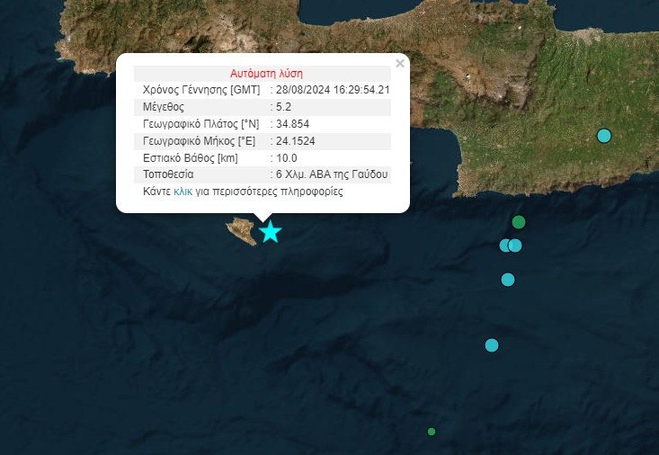 Το απόγευμα της Τετάρτης (28/08) και συγκεκριμένα στις 19:29 ισχυρή σεισμική δόνηση σημειώθηκε στην Κρήτη και πιο αναλυτικά στο νότιο τμήμα του νησιού.