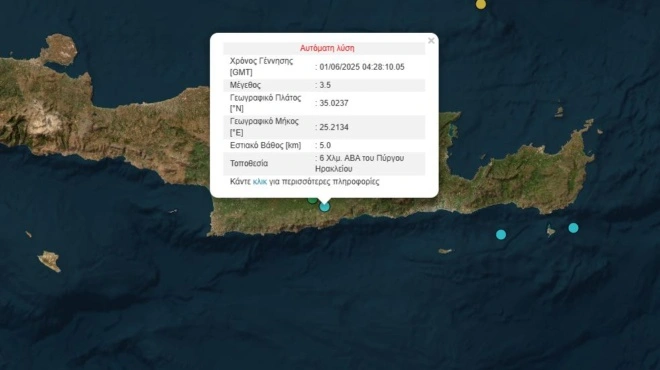 Σεισμός… ξύπνησε την Κρήτη καθώς σύμφωνα με το Γεωδυναμικό Ινστιτούτο Αθηνών, το μέγεθός του ήταν 3,5 Ρίχτερ.