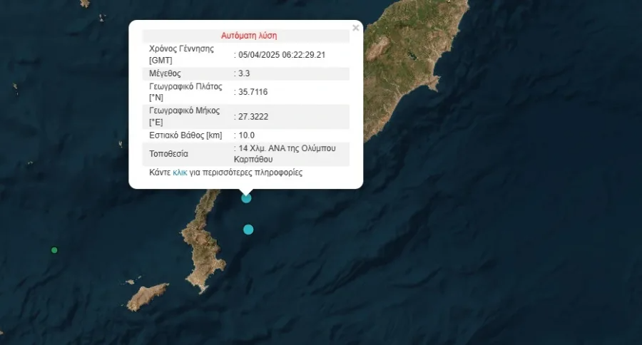 Δύο σεισμοί μεγέθους 3,1 και 3,3 της κλίμακας Ρίχτερ, ταρακούνησαν την Κάρπαθο και ανησύχησαν τους κατοίκους, σήμερα, Σάββατο, το πρωί.