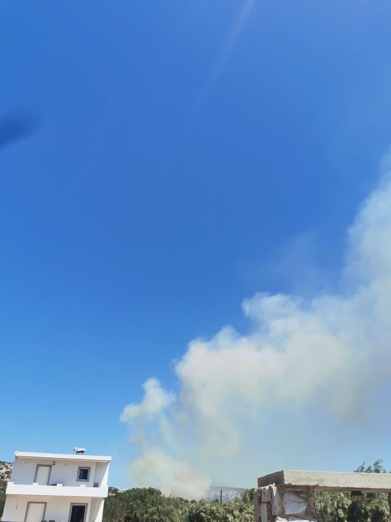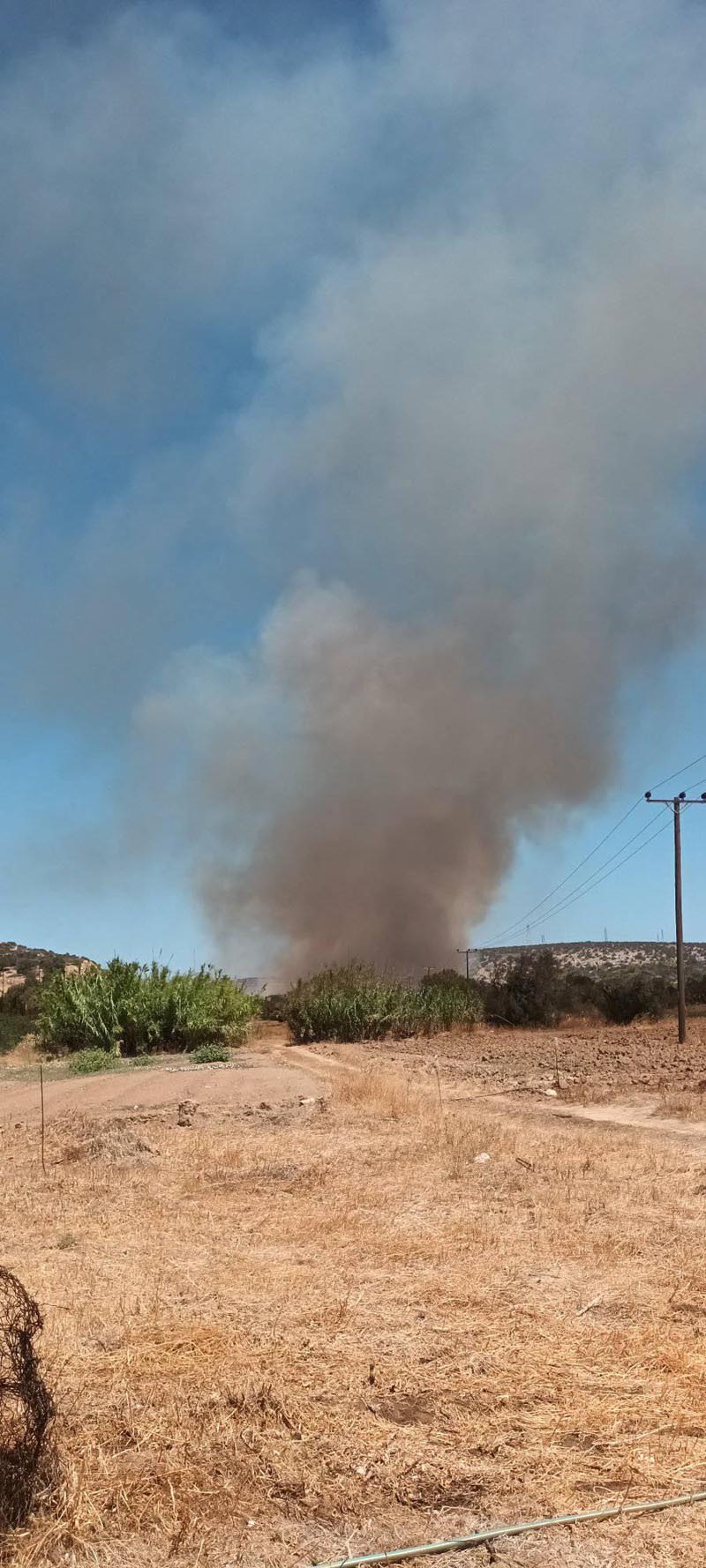 Σύμφωνα με πληροφορίες η φωτιά καίει σε χαμηλή βλάστηση.