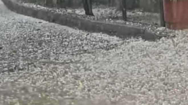Χαλαζόπτωση σημειώθηκε σήμερα, Παρασκευή, το απόγευμα, σε αρκετές περιοχές της δημοτικής ενότητας Κύμης, στην Εύβοια.