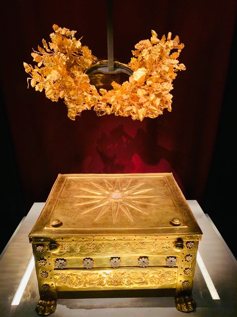 Ο χουντίτης. Ένα ορυκτό της Αιγύπτου. Τι ζητά πάνω στον σκελετό του λεγόμενου Φιλίππου; Αλλά και κάτι ακόμη που το βρίσκω μόνο εγώ. Δεν το λένε άλλοι. Στο νεκροκρέβατο του λεγόμενου Φιλίππου υπάρχουν δυο ελεφαντοστά. Το ένα δείχνει έναν Σάτυρο και το άλλο τον Διόνυσο. Από τον Αριαννό ξέρουμε πως όταν ο Αλέξανδρος φθάνει προς την Τύρο, δεν μπορεί να την πάρει. Υπάρχει αντίσταση και θέλει να φύγει. Το βραδύ, βλέπει στον ύπνο του έναν Σάτυρο και ως μαθητής του Αριστοτέλη –λέει ο Αρριανός– κατάλαβε σα-Τύρος. Η Τύρος δηλαδή, δική σου. Μένει και την παίρνει. Μετά, όταν τα πήρε όλα και τρελάθηκε και ο Αλέξανδρος και έστειλε στις ελληνικές πόλεις ένα διάταγμα να τον κάνουν Θεό, οι Σπαρτιάτες το δέχτηκαν πως θέλει να γίνει Θεός. Οι Αθηναίοι όμως είπαν: «από πού και ως που;». Ο Δημάδης, ο οποίος ήταν ένας φίλος του Αλεξάνδρου στην Αθήνα, τους λέει: «προσέξτε, όποιος φυλάει τον ουρανό, χάνει τη γη». Φοβούνται οι Αθηναίοι πως θα στείλει κανένα άγημα ο Αλέξανδρος και τον ονόμασαν Διόνυσο. Τότε, ο Διογένης ο Κυνικός βγήκε στην αγορά και είπε: «αφού κάνατε αυτόν Διόνυσο, εμένα θα με κάνετε Σέραπη». Οπότε, στο νεκροκρέβατο του λεγόμενου Φιλίππου, ένας Διόνυσος και ένας Σατυρος τι γυρεύουν; Επίσης, όλη αυτή η πολυτέλεια, ο χρυσός που βρίσκεται στον τάφο, που βρέθηκε; Όταν πήγαν για εκστρατεία οι Μακεδόνες, είχαν χρέη. Μόνο χρέη. Που τον βρήκαν; Ενώ όταν στην Περσία έγινε μια ‘μικροεπανάσταση’ των Μακεδόνων που ήθελαν να γυρίσουν στην πατρίδα τους, τους μάζεψε ο Αλέξανδρος και τους είπε: «φτάσατε ξυπόλητοι και γυρνάτε τώρα με τόσα χρυσάφια». Οπότε, όπως και αν το κάνουμε, πρέπει να εξηγήσουμε που βρέθηκαν τα χρυσά στεφάνια, στον τάφο του λεγόμενου Φιλίππου. Οπότε όταν βρέθηκε ο σκελετός του Φιλίππου, από τους Αμερικάνους, με το τραύμα στην κνήμη οι δικοί μας δεν απάντησαν. Σου λέει, μόνο ο Φίλιππος θα είχε τραύμα στην κνήμη; Βρήκαμε και είναι σίγουρο, τον τάφο του μικρού Αλεξάνδρου που σκότωσε ο Κάσσανδρος. Το DNA του μικρού Αλεξάνδρου, είναι σχετικό με αυτό στον τάφο του λεγόμενου Φιλίππου. Άρα λένε πως είναι ο Φίλιππος, ο παππούς.