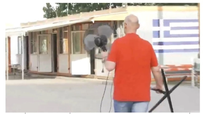 Σε βίντεο της ΕΡΤ, ένας πατέρας πηγαίνει στο σχολείο, κρατώντας τον ανεμιστήρα στα χέρια.