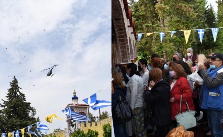 «Κοντά στο Μοναστήρι διατηρώ ελικοδρόμιο. Από το 2004 γνώρισα την Κεχαρητωμένη του Μοναστηριού Είχε την ιδέα να ρίξω ροδοπέταλα από το ελικόπτερο. Ένιωσα κάτι πολύ δυνατό μέσα μου. Με άγγιξε πολύ. Φυσικά δεν ζήτησα αμοιβή. Δέθηκα πολύ με τη Μονή. Βάφτισα τα τρία μου παιδιά στο συγκεκριμένο Μοναστήρι και κάθε χρόνο το θεωρώ χρέος μου να κάνω αυτή την πτήση ως πράξη πίστης και ευγνωμοσύνης», ανέφερε ο Μιχάλης Πουλικάκος μιλώντας στο ethnos.gr.