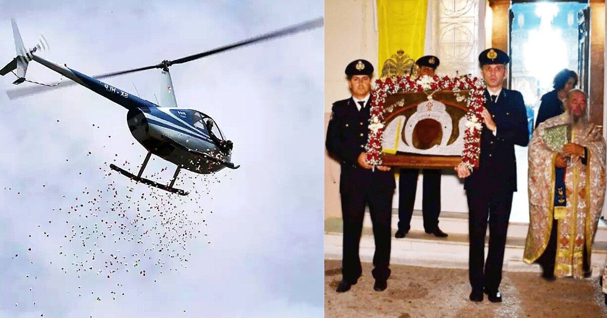 Έλληνας πιλότος που σώθηκε από επίθεση στην Καμπούλ, ραίνει την εικόνα της Παναγίας με ροδοπέταλα από το ελικόπτερό του