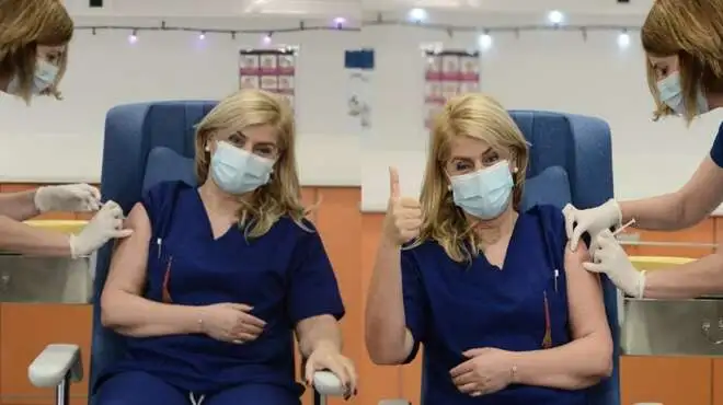 Εμβόλιο για τον κορωνοϊό: Ο εμβολιασμός της Ευσταθίας Καμπισιούλη έγινε με χειροκροτήματα. Η ίδια είναι νοσηλεύτρια μονάδας εντατικής θεραπείας του Ευαγγελισμού. Η ίδια σήκωσε τον αντίχειρά της. Θέλησε να δείξει πως όλα θα πάνε καλά. Επίσης, ανέφερε στους δημοσιογράφους «Νομίζω ότι πολλοί με ζηλεύουν σήμερα και πολλοί θα ήθελαν να είναι στη θέση μου».