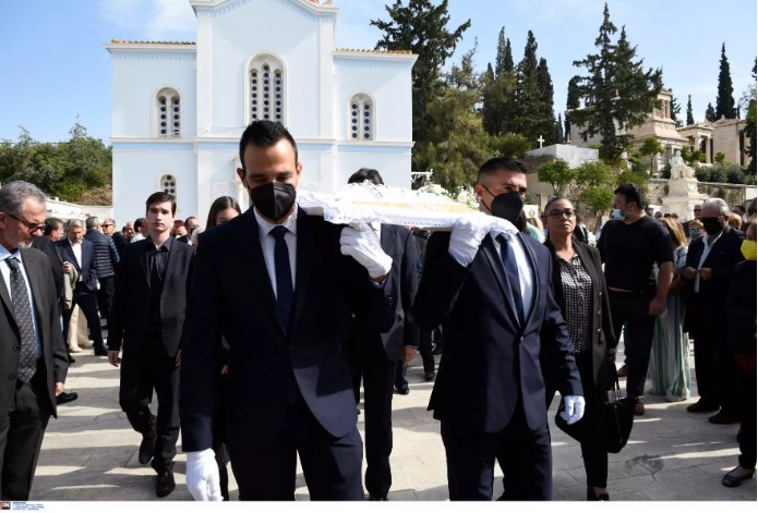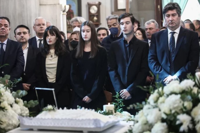 Ο σύζυγός της Ανδρέας Τσούνης, αλλά και τα τρία παιδιά τους, Αιμιλία, Γιώργος και Κατερίνα ήταν ντυμένοι στα μαύρα και φανερά συγκινημένοι.