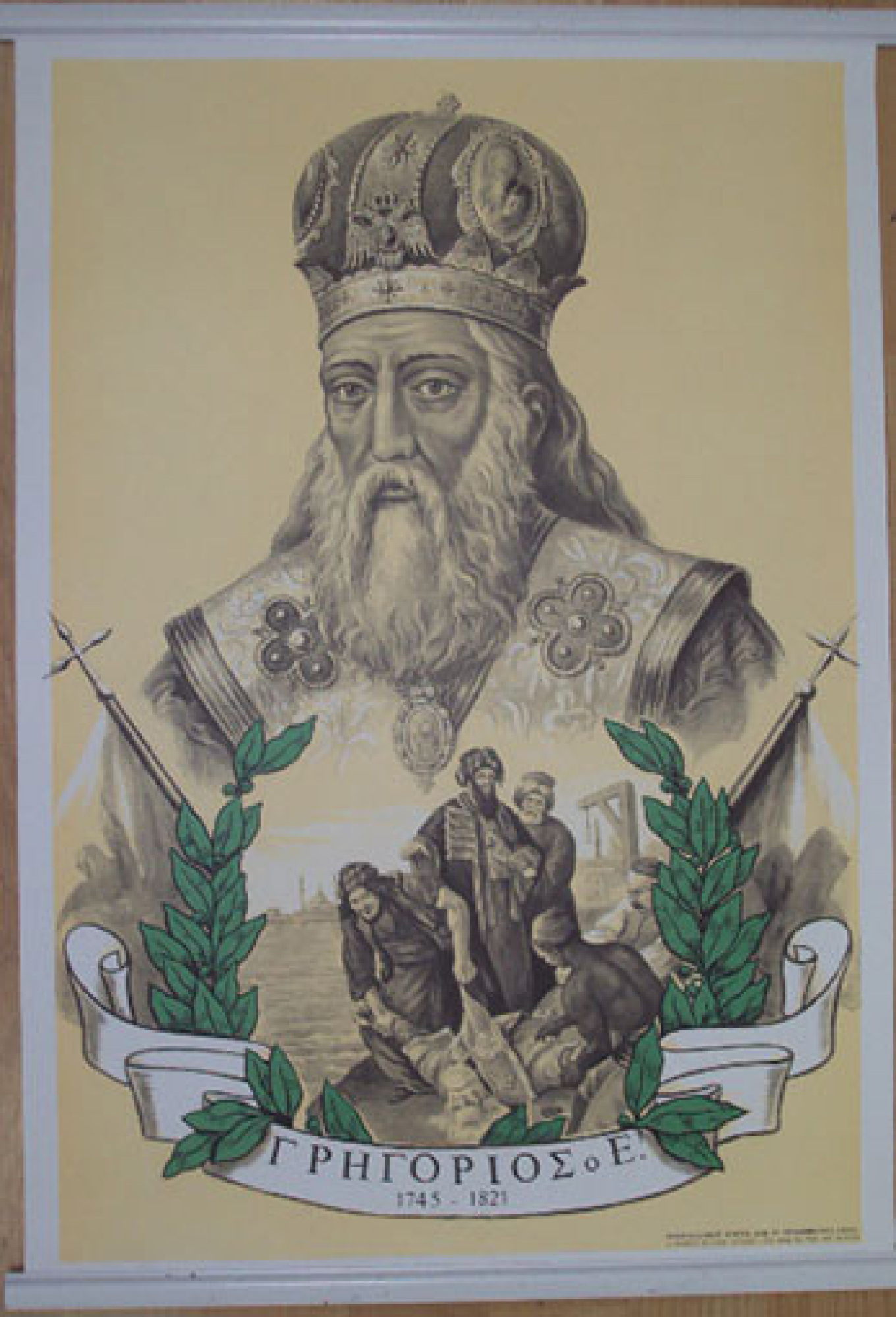 Ο Άγιος Γρηγόριος ο Ε’, απαγχονίστηκε από τους Οθωμανούς στις 10 Απριλίου 1821, σε αντίποινα για την Ελληνική Επανάσταση, και θεωρείται εθνομάρτυρας και ισαπόστολος.