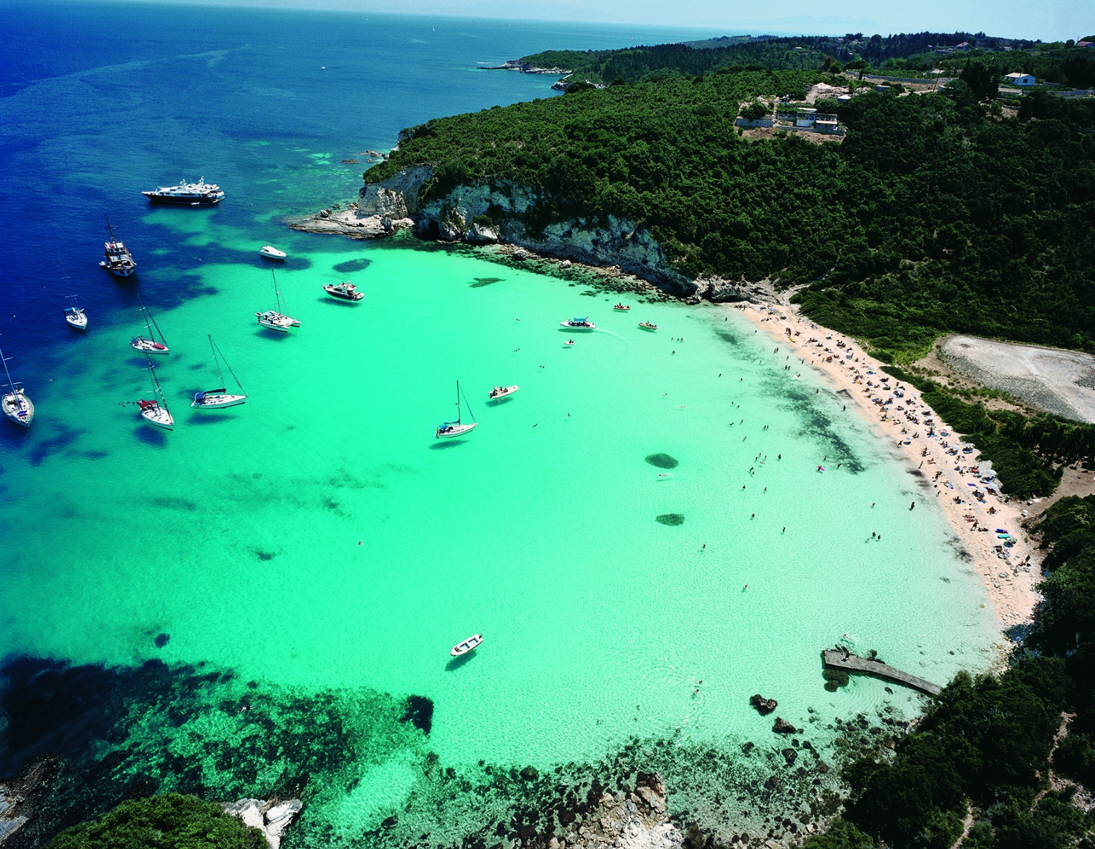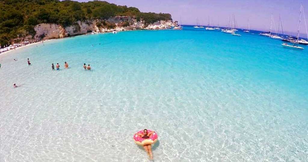 Τα τιρκουάζ νερά στις παραλίες των Αντίπαξων θα εντυπωσιάσουν μικρούς και μεγάλους.