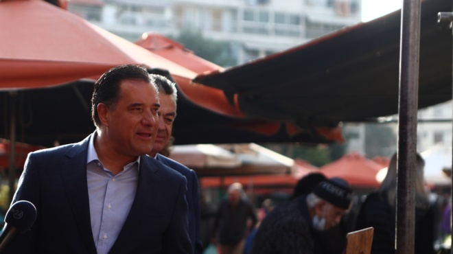 Μία ιδιαίτερα θερμή υποδοχή είχε ο Άδωνις Γεωργιάδης, σε λαϊκή αγορά την οποία επισκέφτηκε, από μία πωλήτρια.