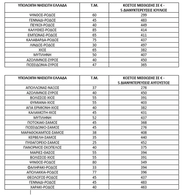 Μια κάρτα εισόδου κοστίζει 124 ευρώ, ενώ απαιτείται εγγύηση 500 ευρώ. Πάντως, οι ξενοδόχοι του νησιού, λόγω των πολλών διελεύσεων των μίνι βαν των ξενοδοχείων σε 24ωρη βάση διαμαρτύρονται για τα «διόδια».