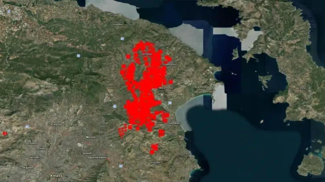 Δείτε το μέγεθος της τραγωδίας που μέχρι αυτή την στιγμή μετράει τα 100.000 στρέμματα στον χάρτη του Meteo: